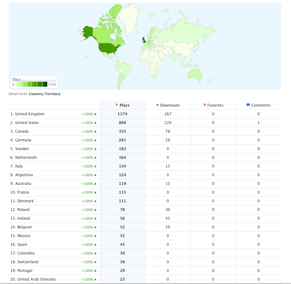 As many of you will know, one of the good things about Soundcloud (and particularly with the Pro account) is the stats it provides you with regarding your uploaded tracks.
