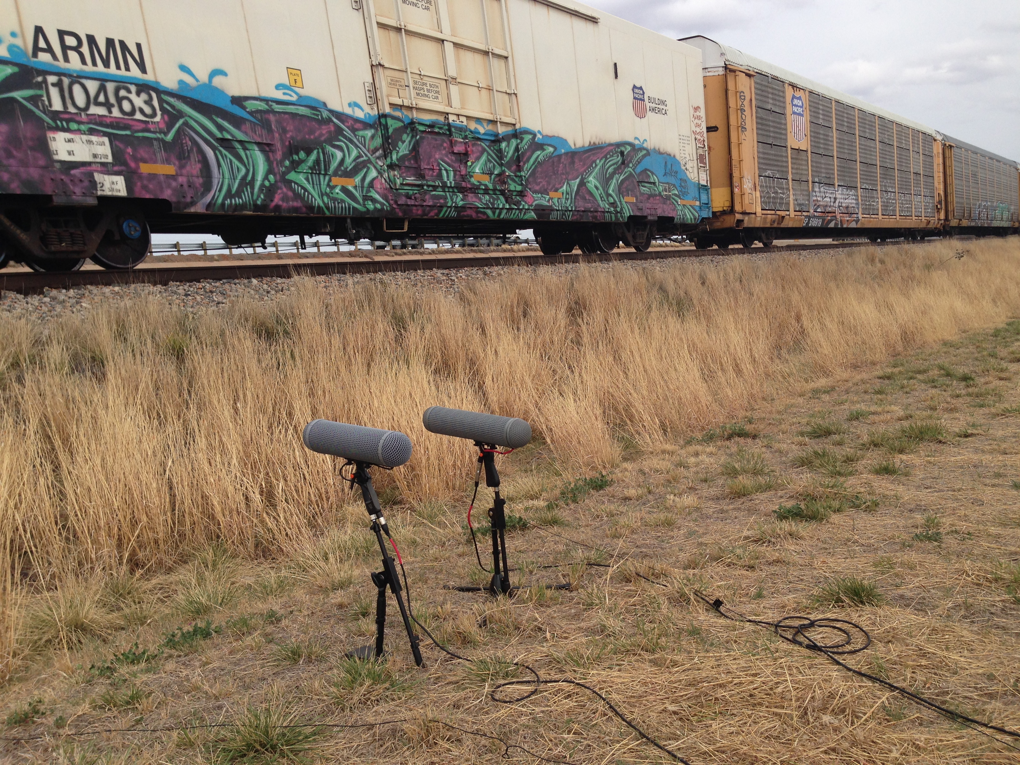 I placed the two omnis about 2 feet apart, and put the PZMs on the same general plane, but about 6 feet apart. I had concerns about the omnis being phase-coherent without a jecklyn disk at that close distance because I had run some tests earlier in the trip that didn’t go as well as I had hoped – hence the PZMs, which I knew would be good for phase. Once I was set up, rolling and slated I heard the train’s horn in the distance. Trains are required to blow their horns at each intersection they cross that doesn’t have a gate with the clanging bells, and this train was one intersection away from me.