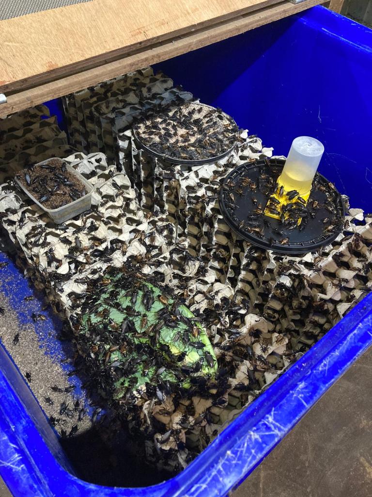 We were inside the Zoological Society of London (ZSL), aka the London Zoo. We’d arrived here via an internet rabbit hole, searching for a suitable environment to record insects. We didn’t know what to expect but the Media Liaison person soon welcomed us. In a matter of minutes we were standing in a high-ceilinged warehouse room.